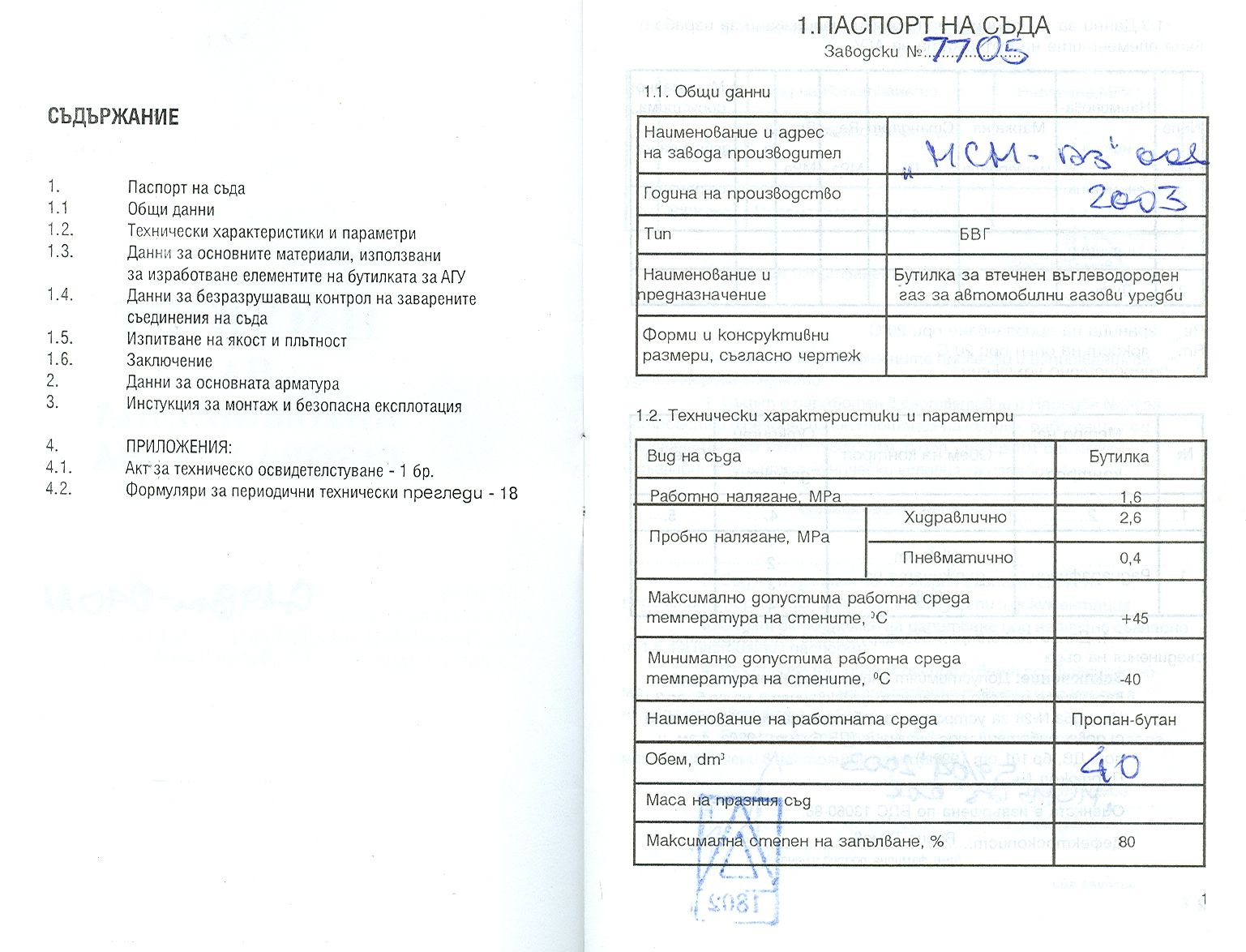 На снимките ще видите документите на автогазовата уредба, на бутилката и на изпарителя. Изпарителят си беше перфектен, ама при удара са се отчупили пластмасовите стърчащи от него части. Т.е. нужен му е малко ремонт.
